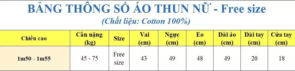 BẢNG SIZE: