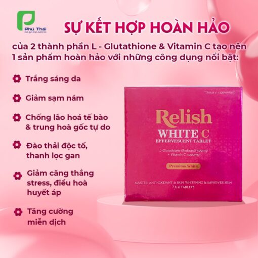 Tên sản phẩm: RELISH WHITE C – TRẮNG DA, CHỐNG LÃO HOÁ & THẢI ĐỘC